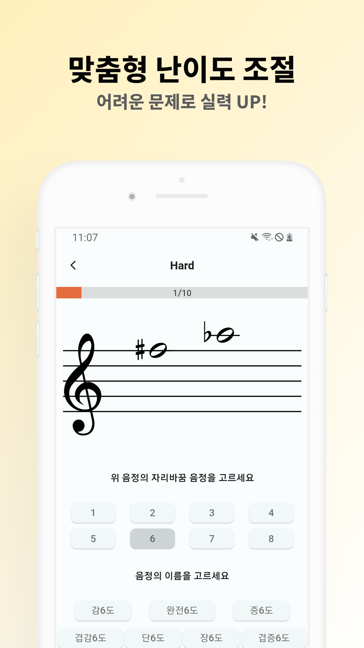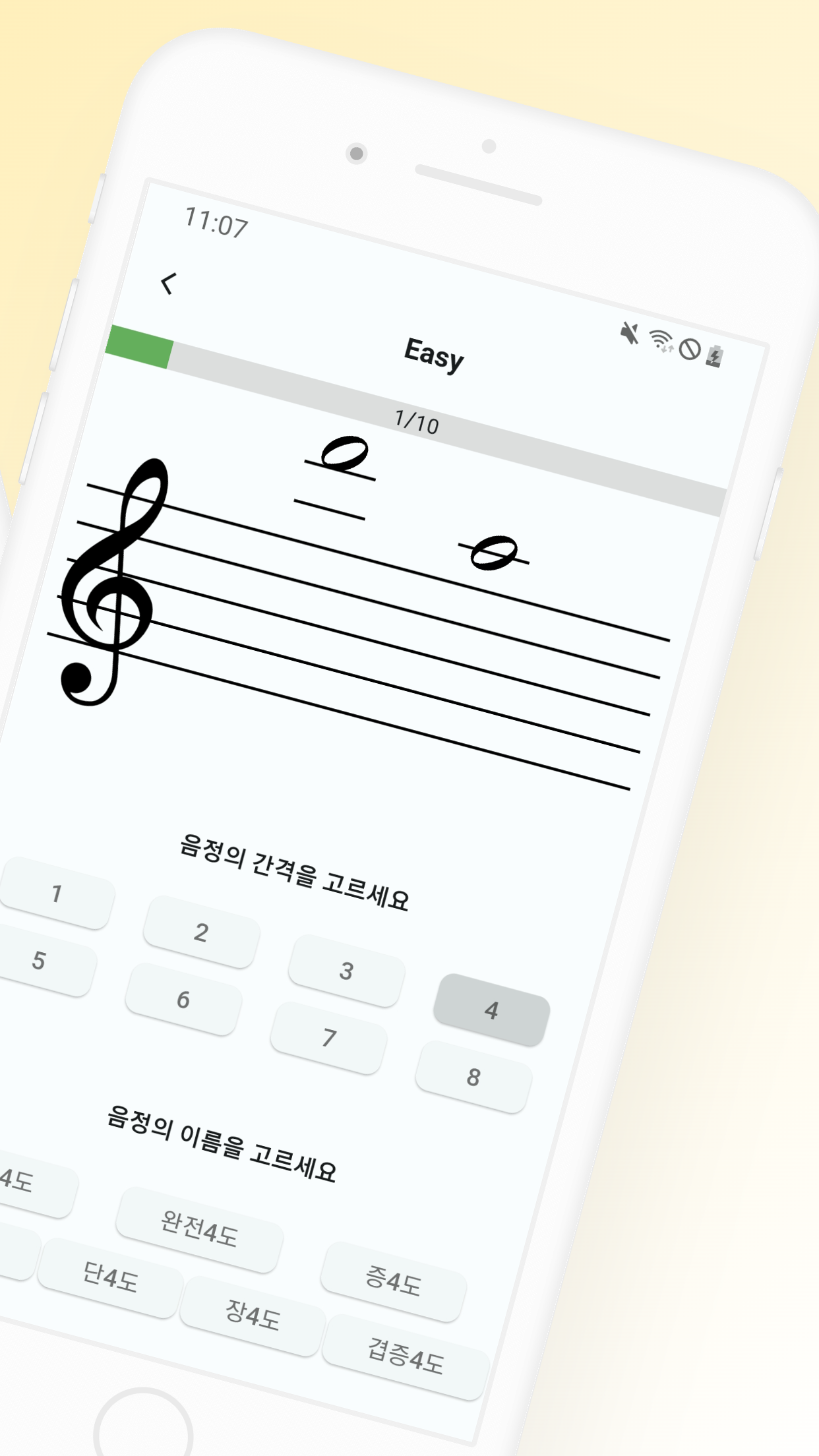 겹치지 않는 다양한 음정 문제들이 출제됩니다.